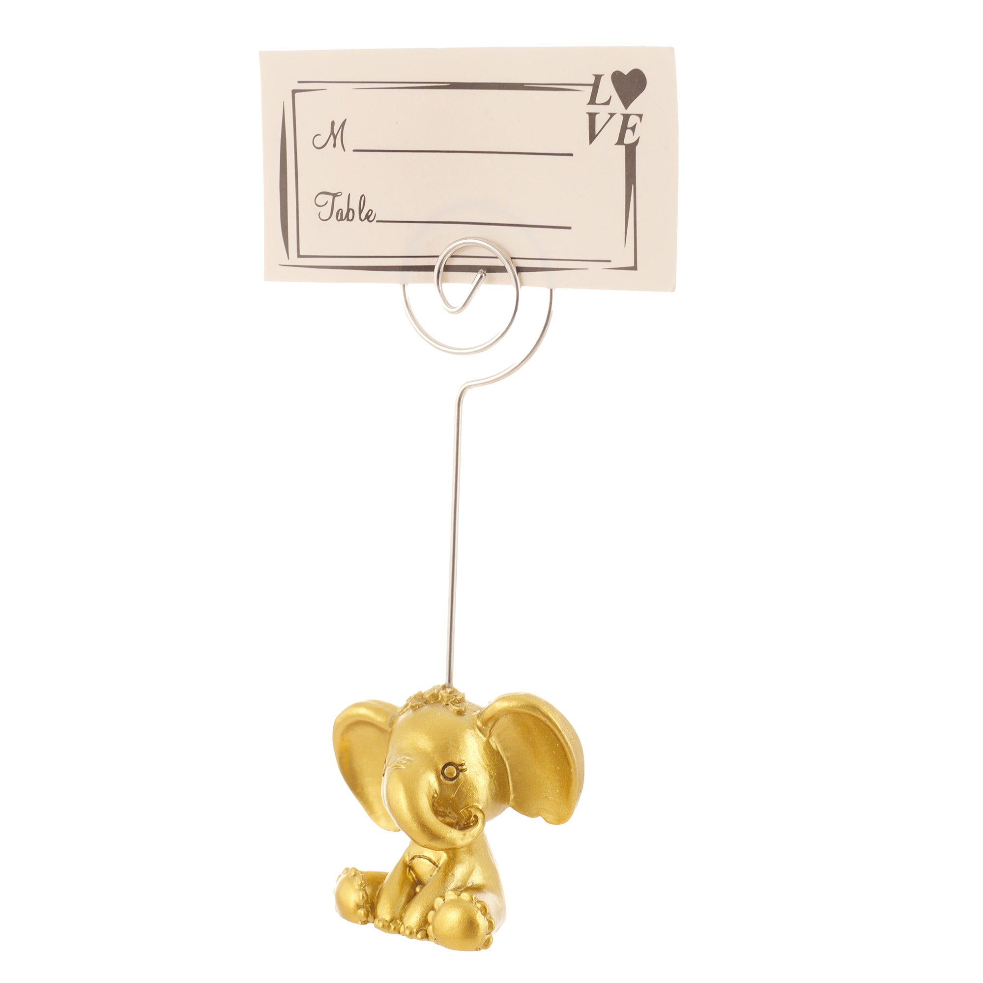 The elephant-shaped metal placeholder is a practical choice for organizing tables at events. The stable base allows you to hold a card with names, table numbers or other messages. It easily integrates into any decor, from elegant events to casual dining.