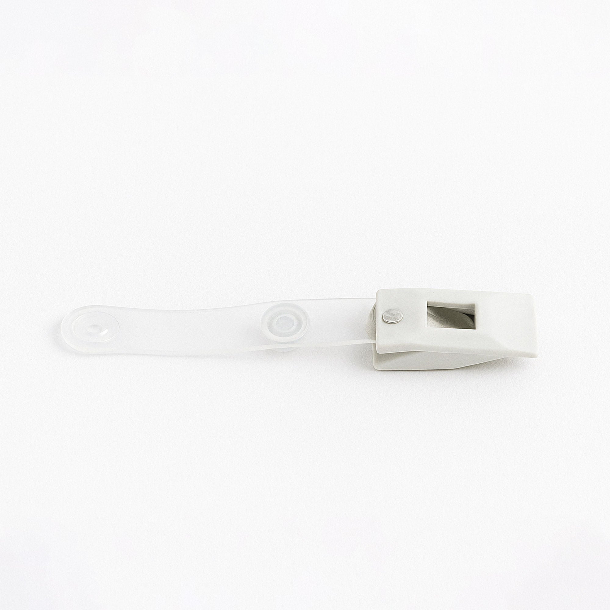 An essential accessory for holding badges, access cards or ID cards, this clip features a metal alligator clip and a flexible transparent PVC band. It is ideal for everyday use in environments such as offices, hospitals, schools, trade fairs and conferences.