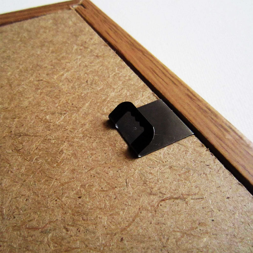 • The hangers attach to the cardboard behind the frame.