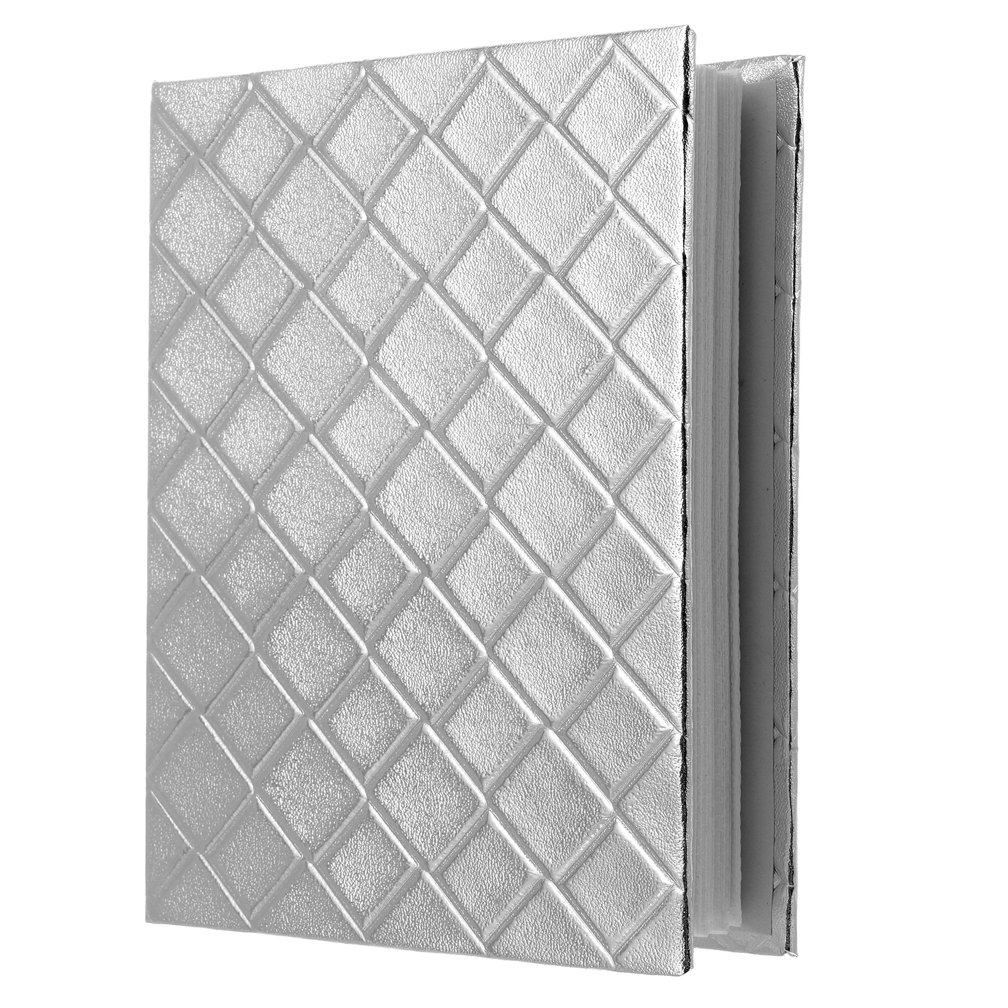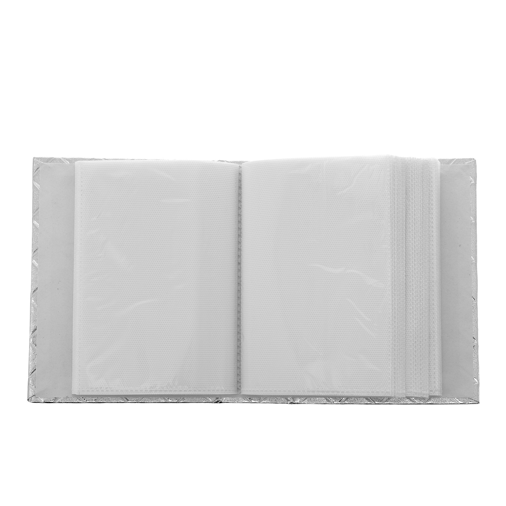 Classic photo album with embossed cover, available in gold and silver. Its elegant design, with a geometric embossed texture, makes it suitable for preserving and displaying memories in a refined manner. The album has a capacity of 100 10×15 cm photos, protected in transparent pockets.