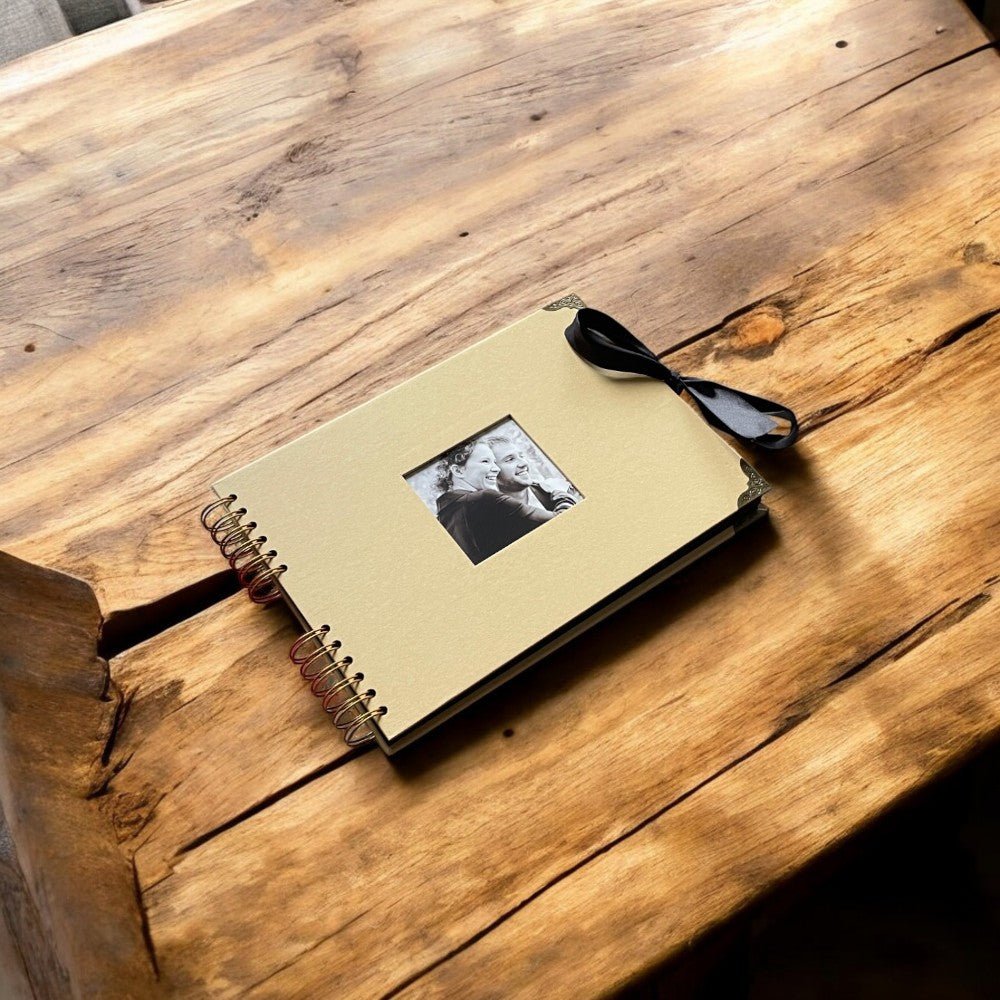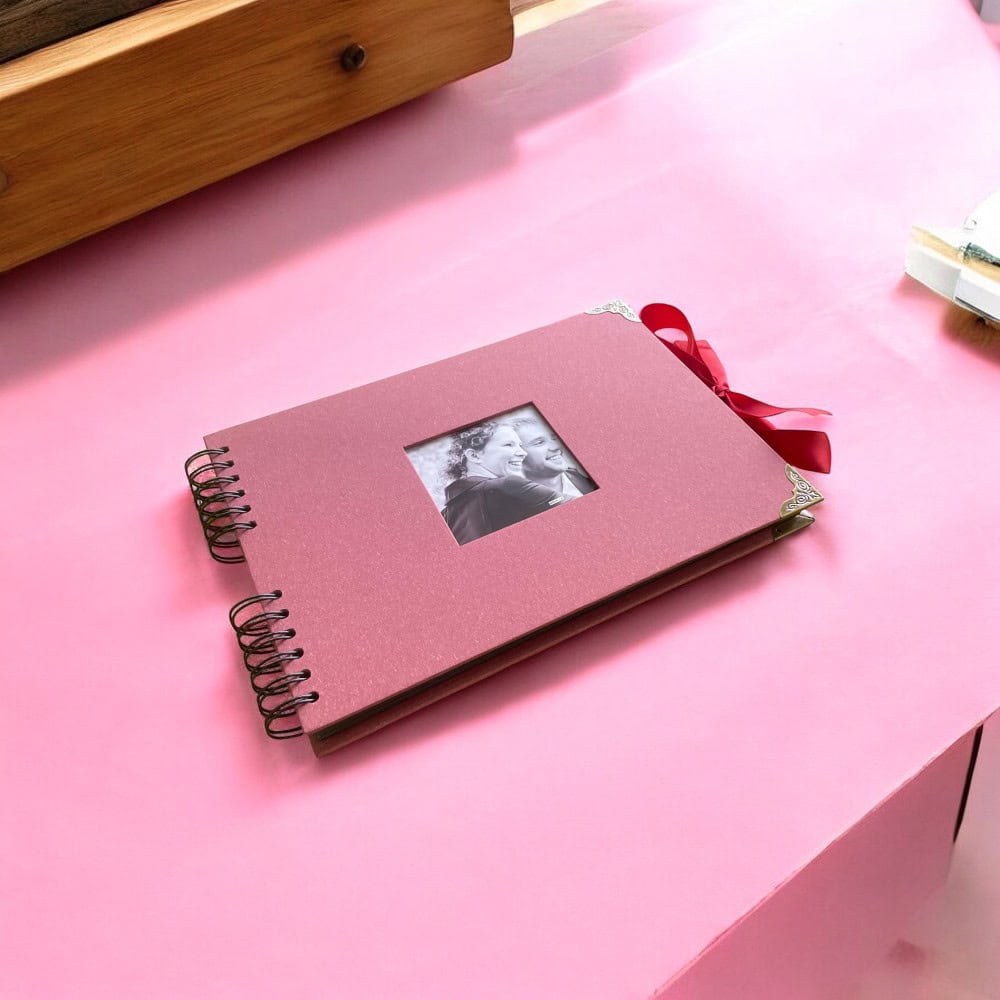 Păstrați amintirile prețioase într-un album pe care îl puteți personaliza complet. Fereastra de pe copertă vă permite să adăugați o fotografie reprezentativă, iar interiorul devine pânza dumneavoastră pentru a aranja poze, notițe și suveniruri, totul securizat elegant cu o panglică din satin.