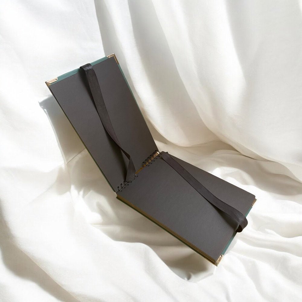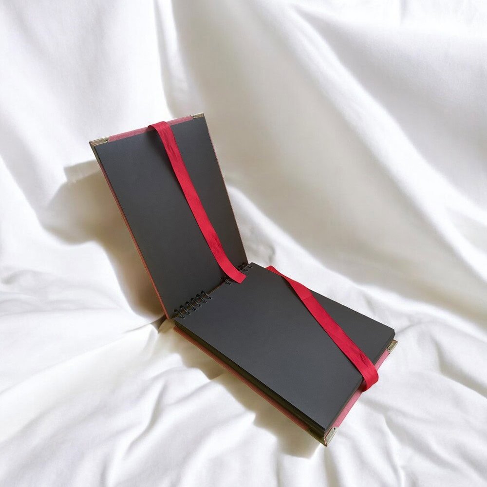 • Închidere cu panglică din satin: Adaugă o notă de eleganță și rafinament, păstrând în același timp albumul închis și filele protejate.
