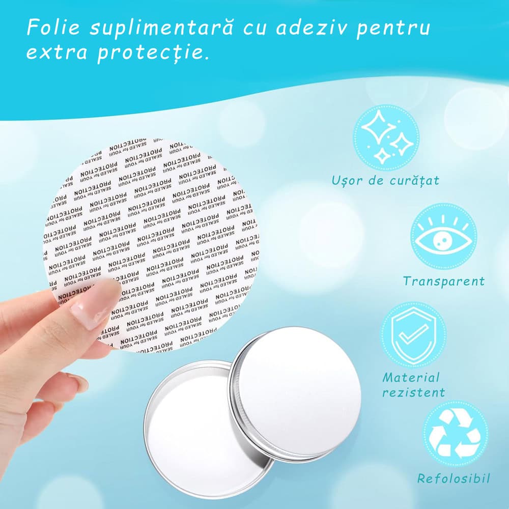 • Disponibil în 3 dimensiuni (30g, 50g, 100g): Versatilitate pentru diverse tipuri de produse.