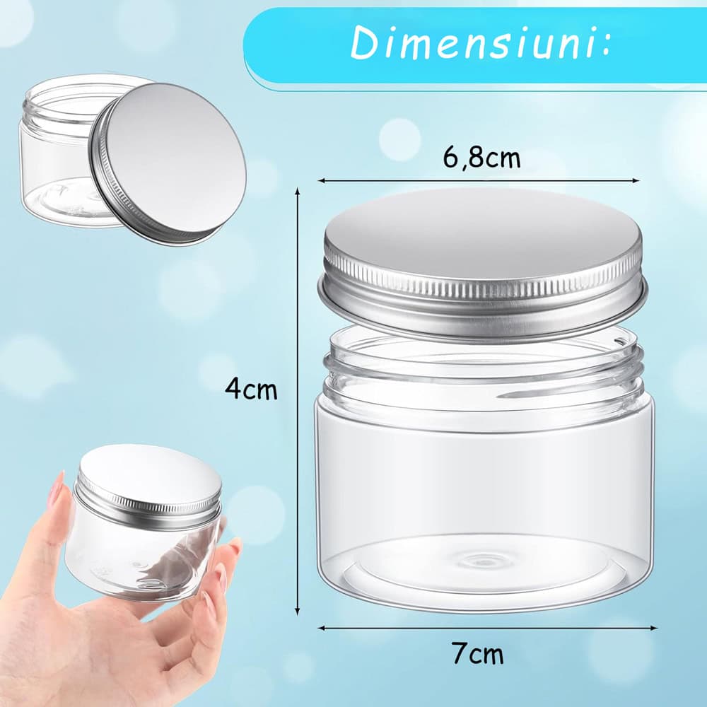 Ideal pentru produse cosmetice, mostre, condimente sau crafturi. Designul compact și elegant oferă vizibilitate conținutului, păstrând totodată prospețimea și siguranța materialelor depozitate.