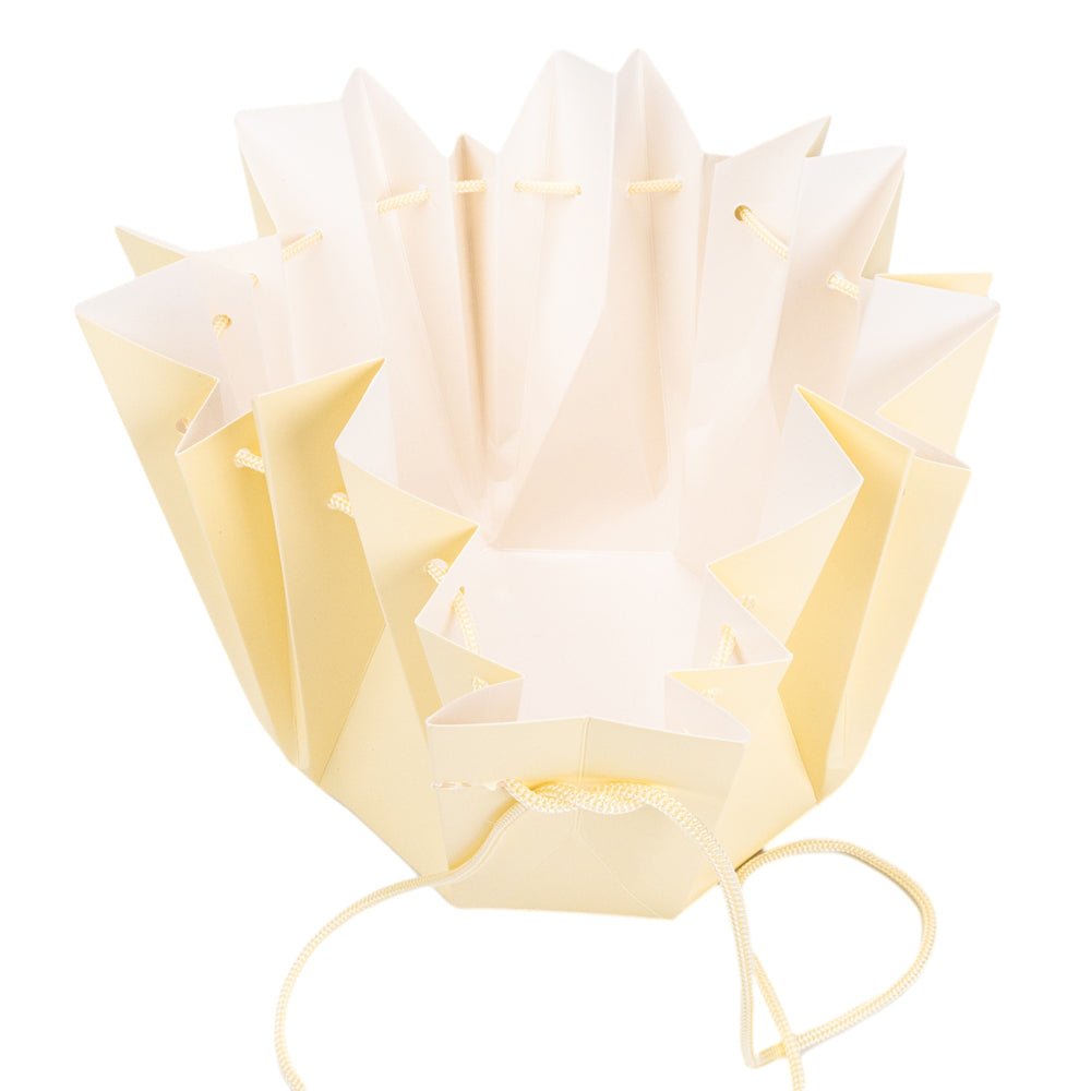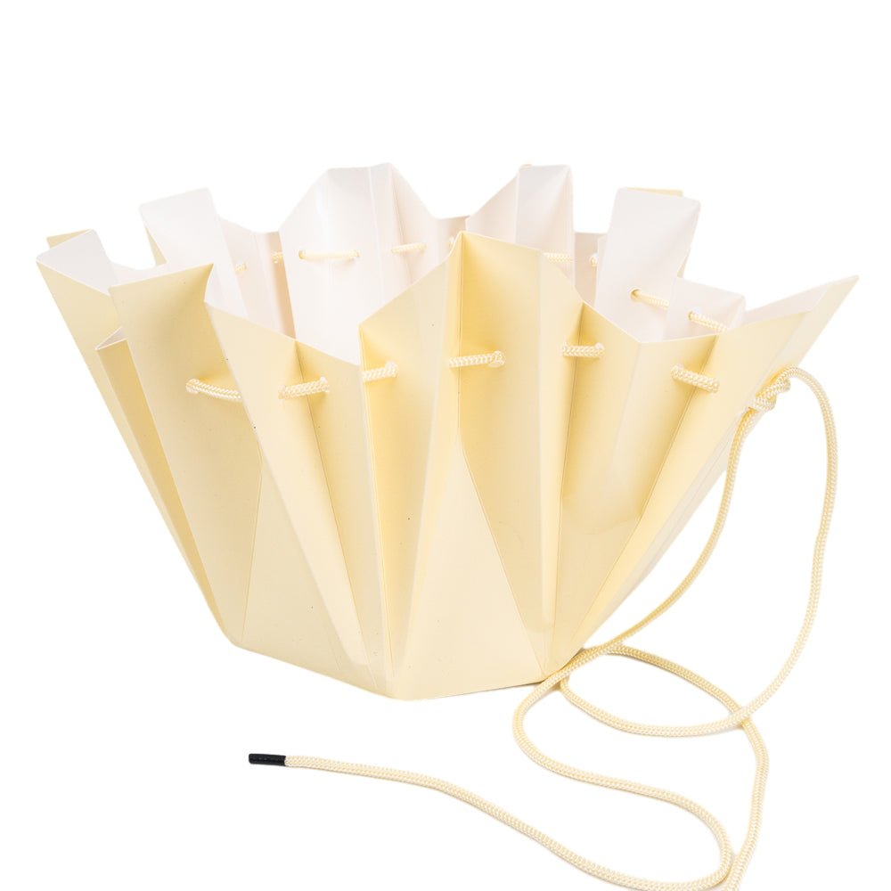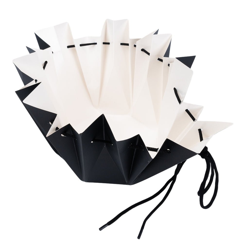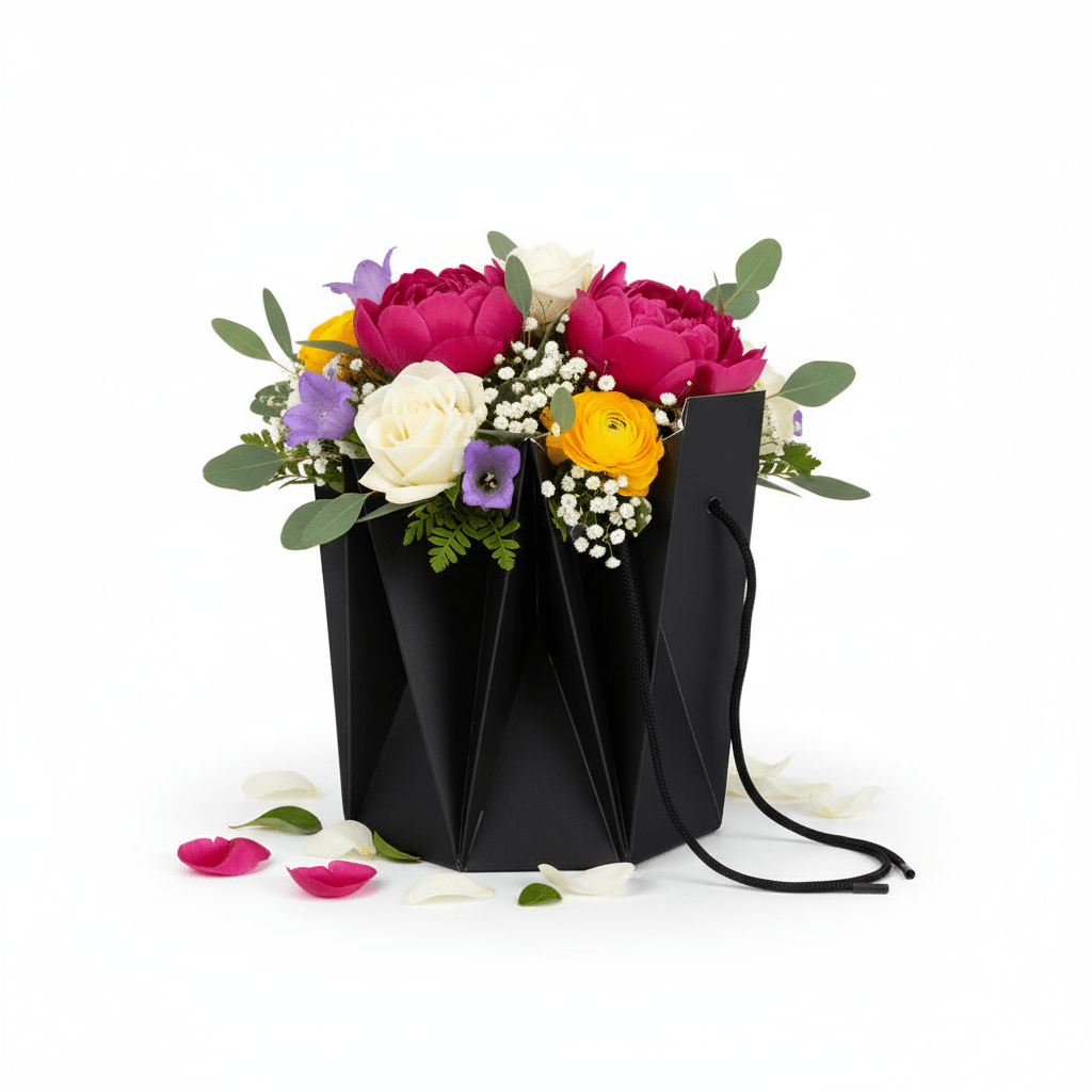 Cutia noastră plisată servește drept ambalaj, vază și cadou, totul într-unul. Structura sa elegantă, pliabilă, se deschide pentru a dezvălui un interior rezistent la apă, gata să găzduiască buchete proaspete sau aranjamente delicate, în timp ce închiderea cu șnur adaugă o notă finală de rafinament.