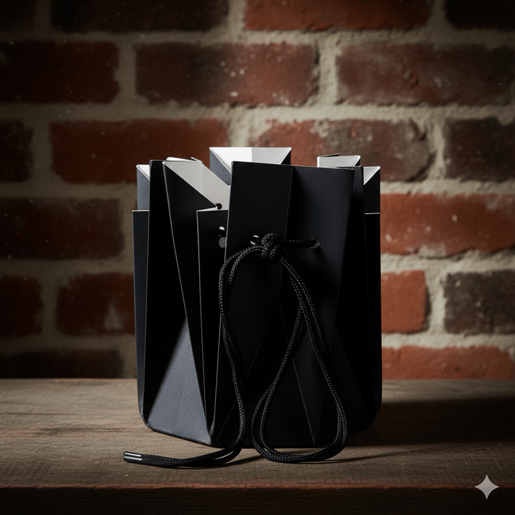 • Design Plisat, Pliabil și Elegant: Structura ingenioasă de tip acordeon permite depozitarea plată, economisind spațiu. Odată extinsă, oferă un aspect sculptural și modern, mult superior ambalajelor tradiționale.
