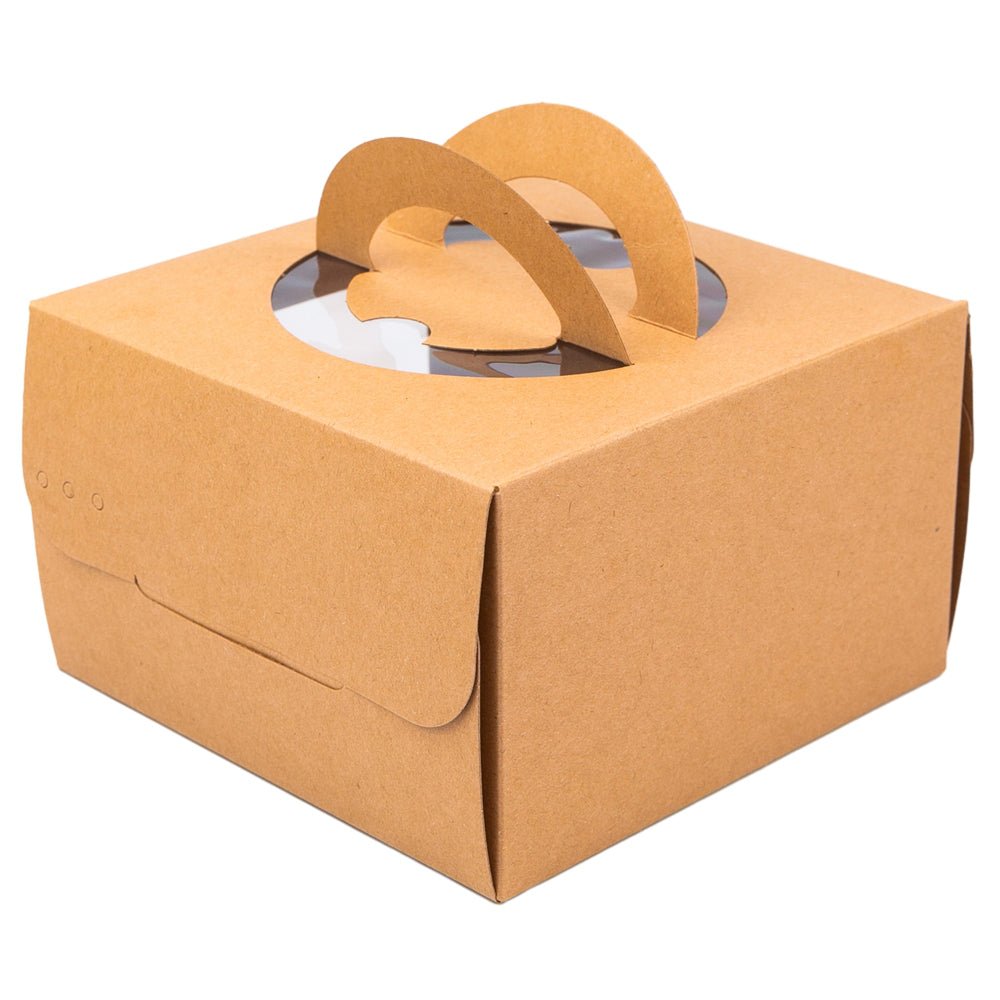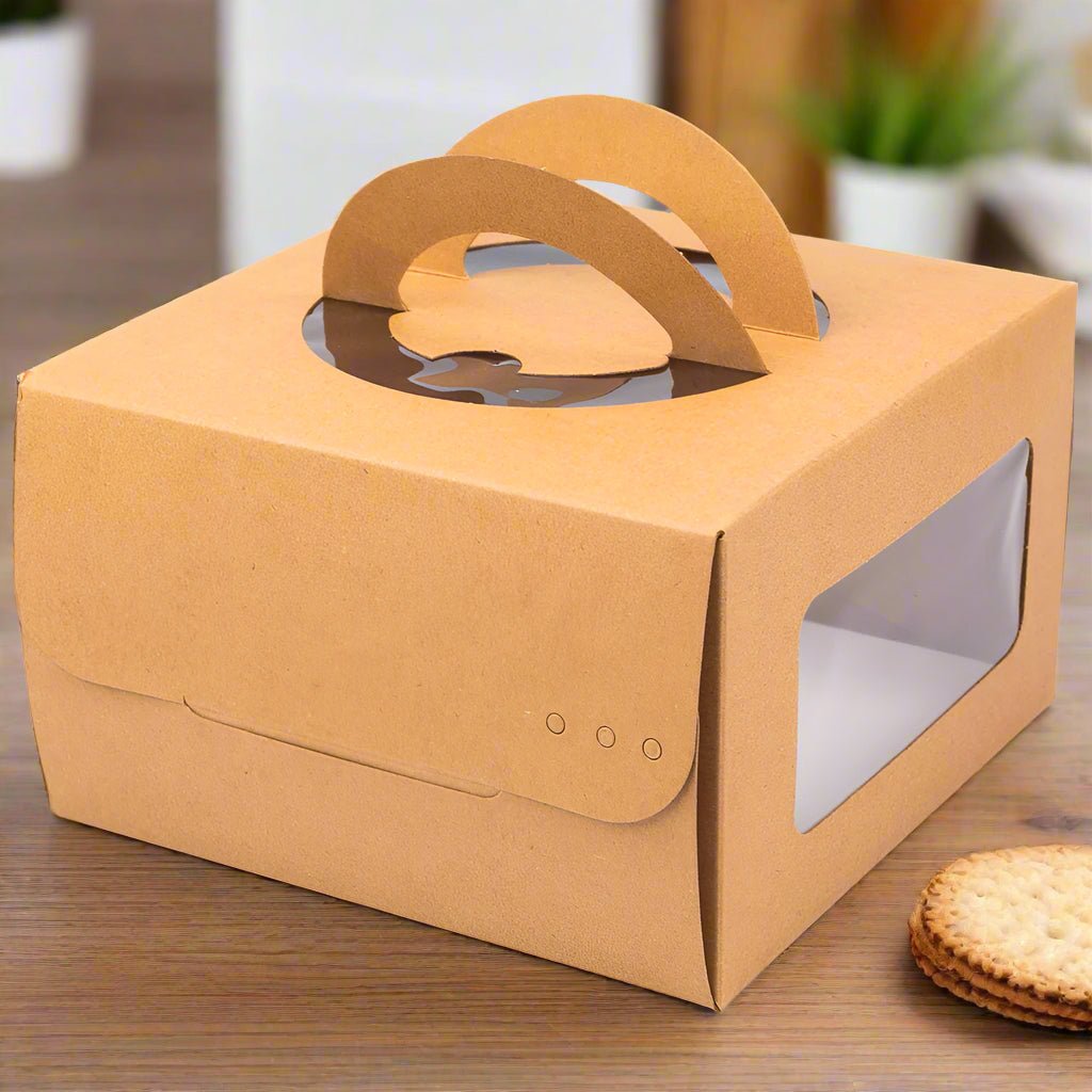 Cutii pătrate kraft cu fereastră și mâner decorativ (set 10 buc)