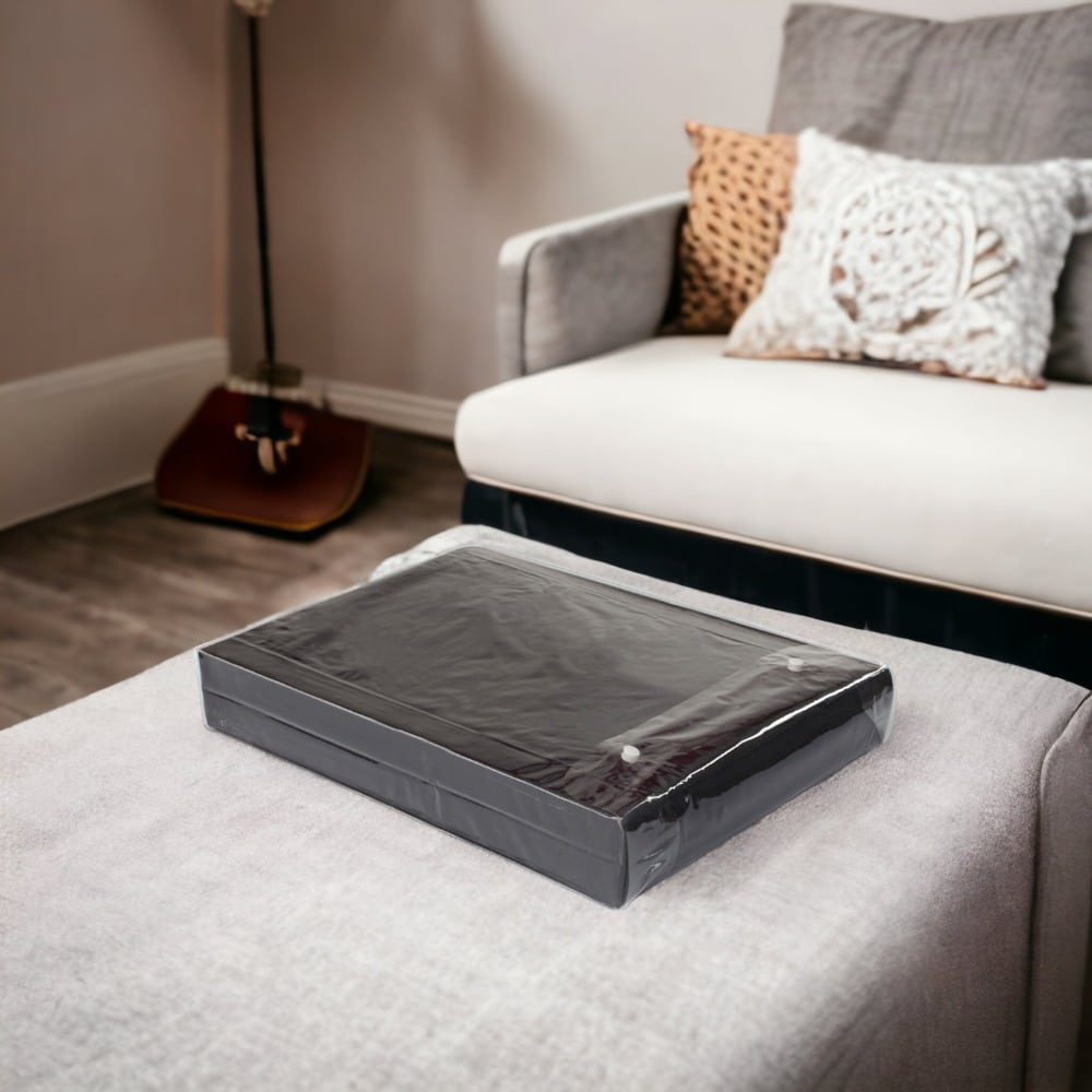 Păstrați lenjeriile de pat, pilotele sau păturile perfect organizate și protejate, fie că sunt pe raftul magazinului sau în dulapul de acasă. Husa noastră special concepută, cu închidere sigură cu capse și mâner practic, este soluția ideală pentru a menține seturile complete, ferite de praf și gata de utilizare, oferind în același timp o prezentare impecabilă.