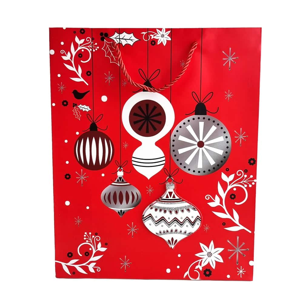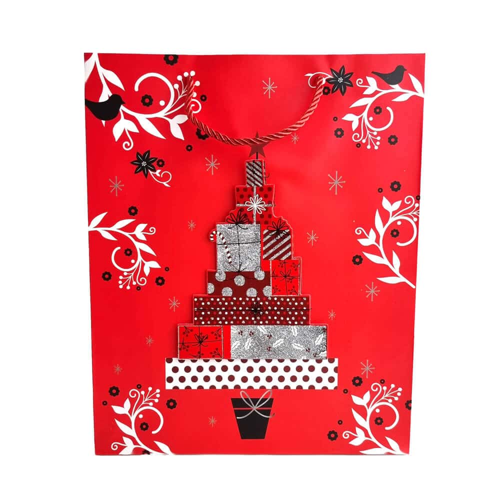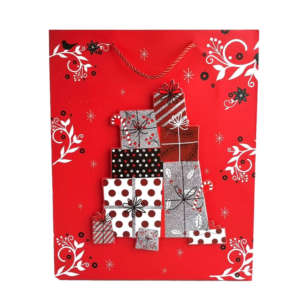 Pungi cadou Crăciun roșii 3D cu slipici model aleatoriu (set 12 buc)
