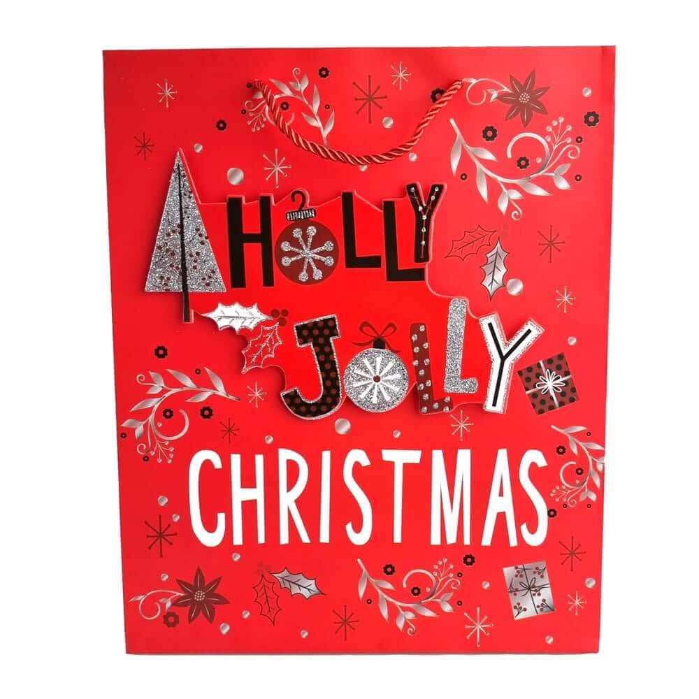 • Pungi cadou Crăciun roșii 3D cu slipici model aleatoriu