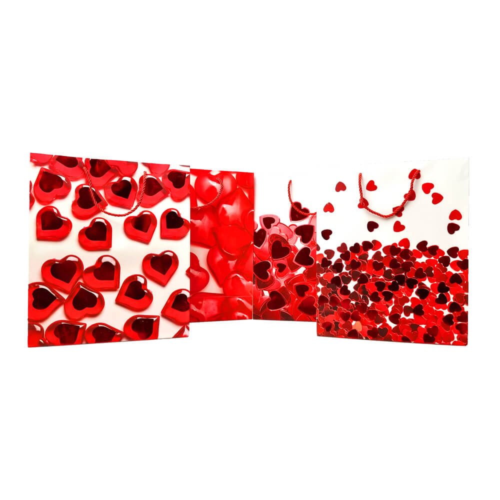 Pungi cadou dreptunghiulare mix 4 modele - Inimi (set 12 buc)