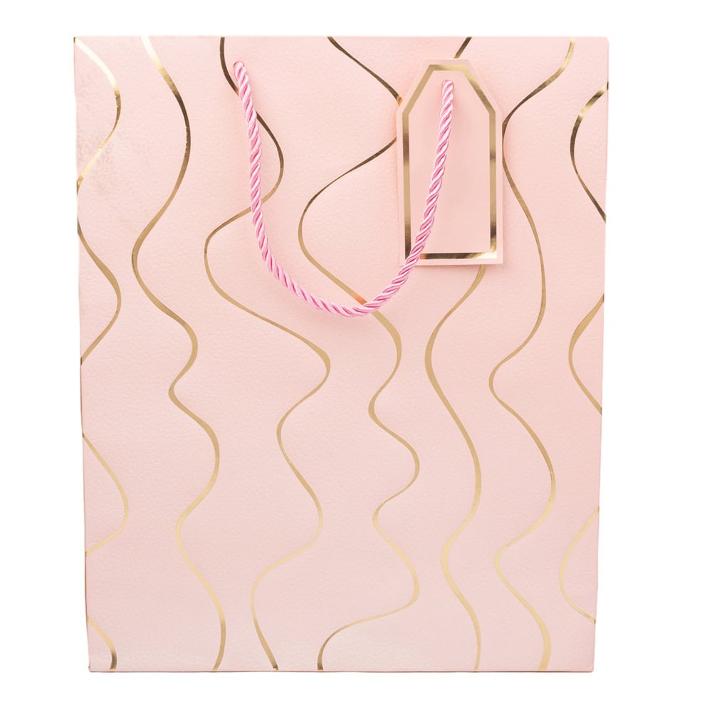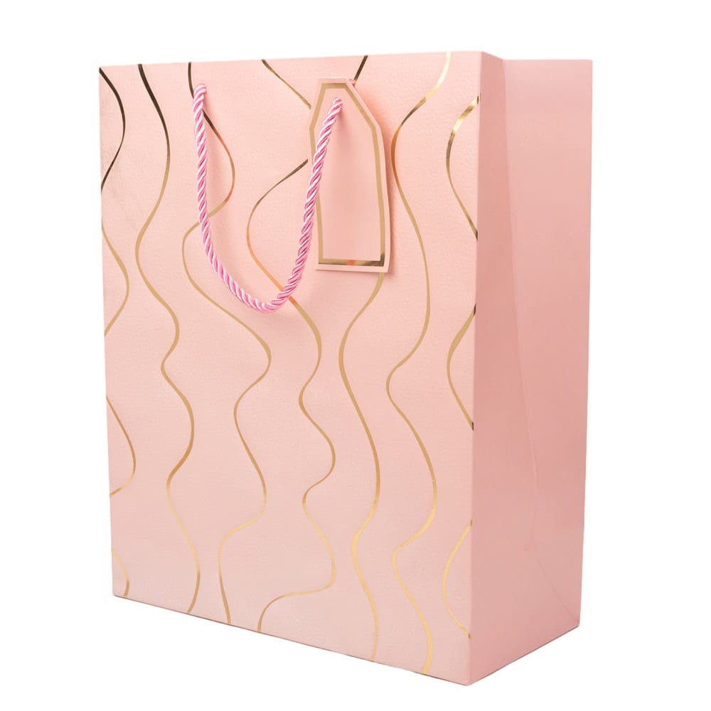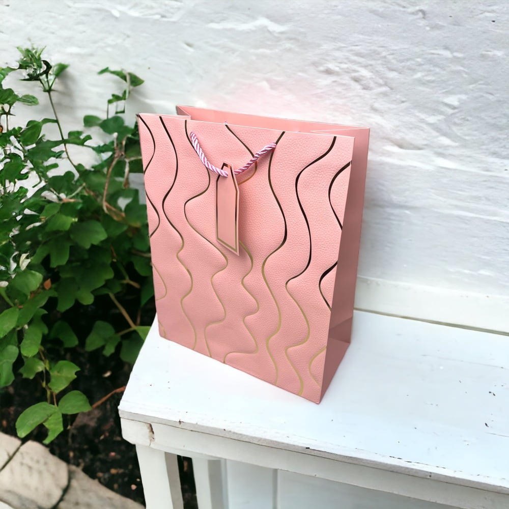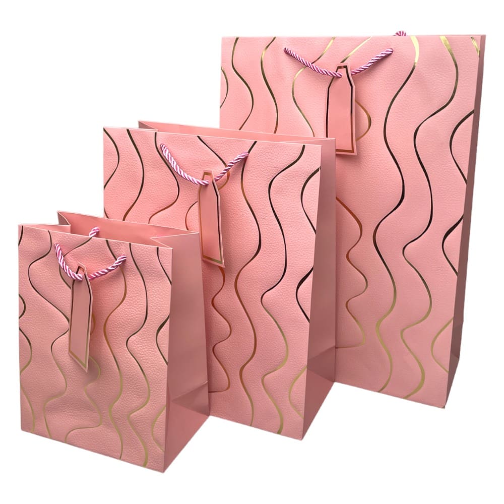 Pungi cadou model valuri aurii - roz aduc o notă de eleganță și rafinament ambalajului pentru cadouri speciale.
