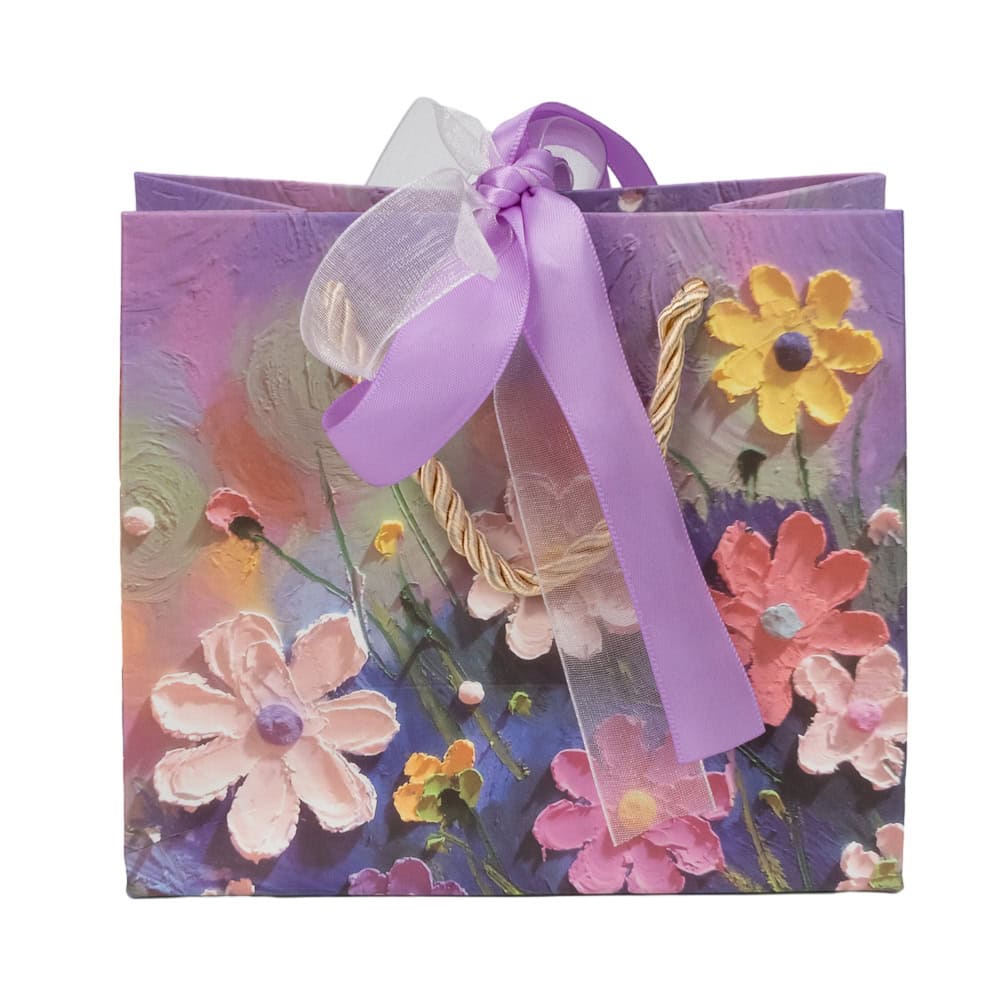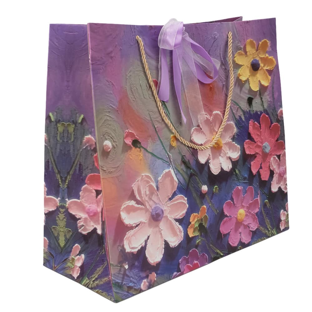 Pungi design pictură 3D cu mâner, fundă satinată și organza - mov - Adaugă o notă artistică și elegantă cadourilor tale cu aceste pungi unice, ce îmbină perfect designul modern cu o notă romantică. Realizate din materiale de înaltă calitate, aceste pungi sunt ideale pentru a impresiona atât pe cei care oferă, cât și pe cei care primesc cadoul.