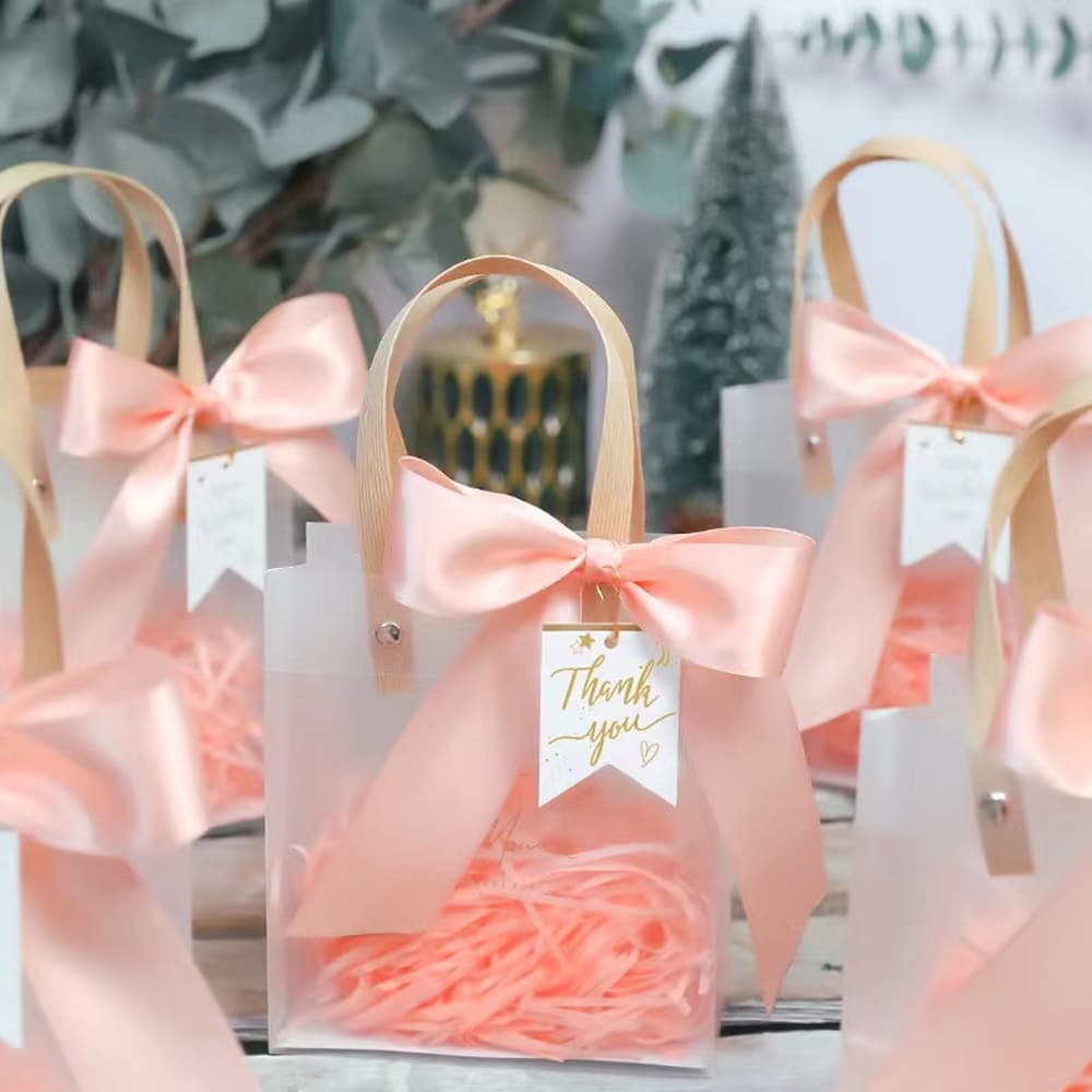 Pungi mate cu fundă și cartonaș Thank you - roz