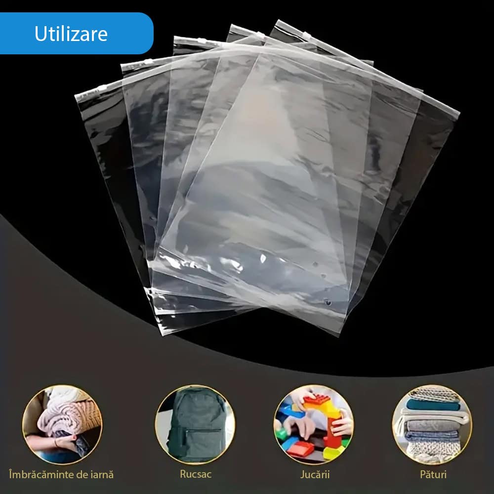 Pungi transparente reutilizabile cu închidere tip cursor (set 50 buc)